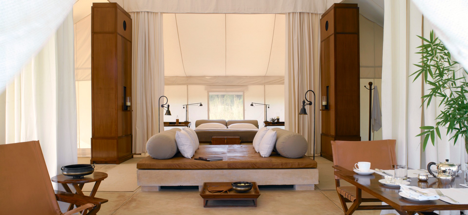 Living luxuriously within nature is a dream come true for some travellers as they journey outside their comfort zone to Aman-I-Khas, a safari outpost within Ranthambore National Park. Guests can enjoy magnificent sights of tigers and other wildlife by day and enjoy the unmatched views of the starlit sky by night. Within tent-style accommodations featuring airy living, sleeping, and bathing amenities, guests will be able to enjoy ultimate privacy while not sacrificing any part of the nature filled oasis. Each tent comes with an experienced batman who is able to accompany guests on their many expeditions throughout the jungle, to River Chambal, or to temples and cultural sites dispersed throughout the Indian landscape.